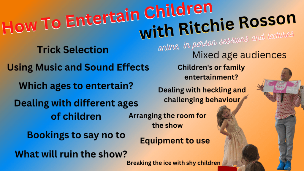 Are you a children’s magician/kids entertainer who wants to learn more brilliant tips about how to make it super fun for mixed ages and grown-ups too? Or do you want to get into the business? I have learned so much about this fantastic business from doing thousands of magic shows over the last ten years at birthday parties, family events, shopping centres, schools, and all sorts of other events. As well as before that for 15 years as a musician and circus contortionist in cabaret, TV, and in movies such as Harry Potter and The Goblet of Fire.