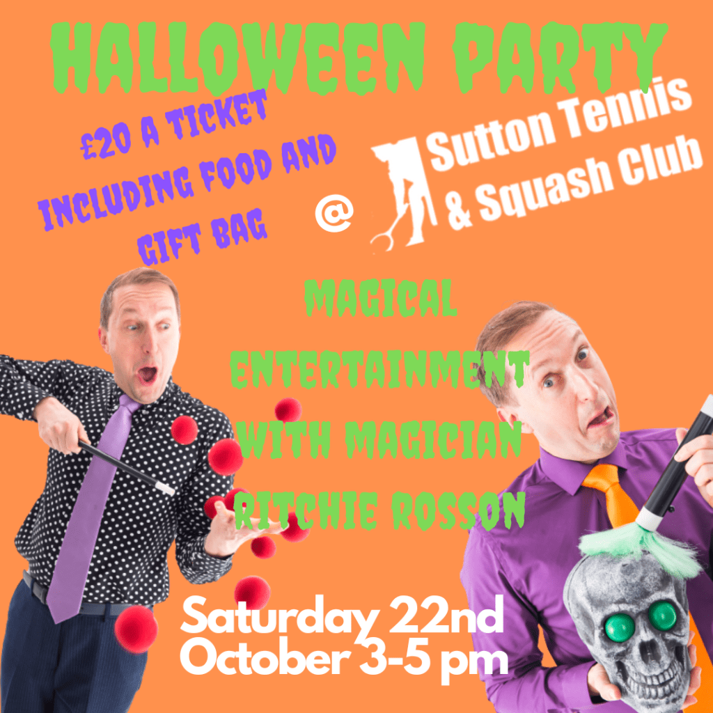 Ever been to the fantastic Sutton Tennis & Squash Club in Sutton? It’s a fantastic friendly club with great facilities. Join for just £20 as a social member and enjoy brilliant events like this one for Halloween featuring Ritchie Rosson BABY!