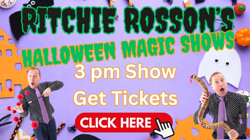 Come to see Ritchie Rosson’s Funny Halloween Magic Shows this Halloween at Bourne Hall in Ewell, Epsom.