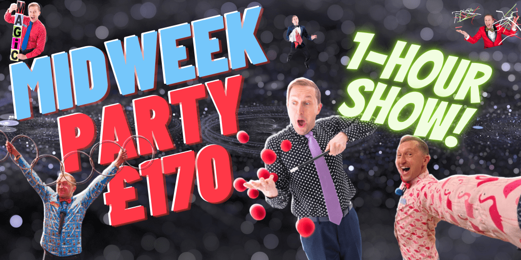 When I started doing children’s parties as an entertainer, I put a magic show together and then thought “I’ll make everyone balloons in the second half.” 30 happy laughing children in the first half became less and less so as they waited and started to get frustrated. Even with lots of jokes along the way, after 5 minutes, children get bored watching an entertainer making balloons and start to get frustrated that they haven’t got their balloon, then they may complain about the colour, the one they got, then comes the popping and crying.